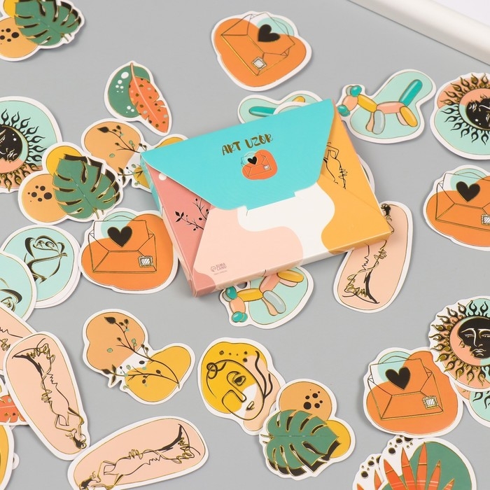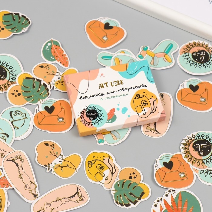 Наклейки для творчества "Абстракция" тиснение золото набор 48 шт 9х7х0,8 см