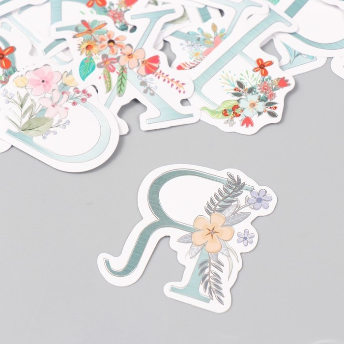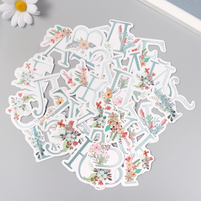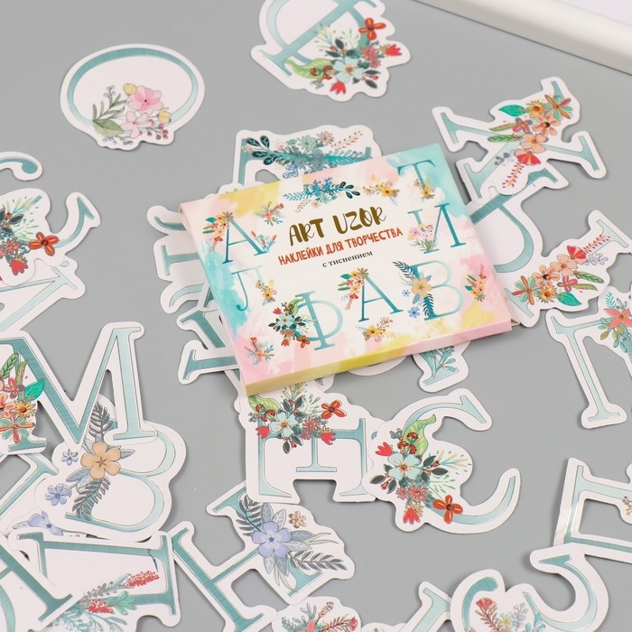 Наклейки для творчества "Цветочный алфавит" тиснение серебро набор 33 шт 9х7х0,8 см