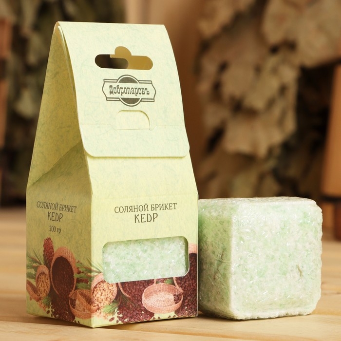 Соляной брикет куб "Кедр" 200 г "Добропаровъ"