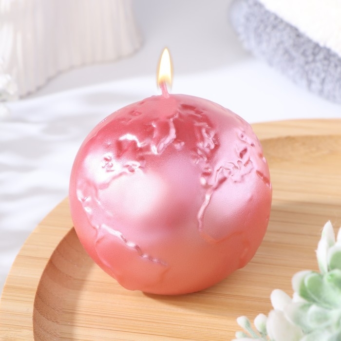 Свеча фигурная "Шар. Планета", 6х5,5 см, розовый перламутр, в коробке