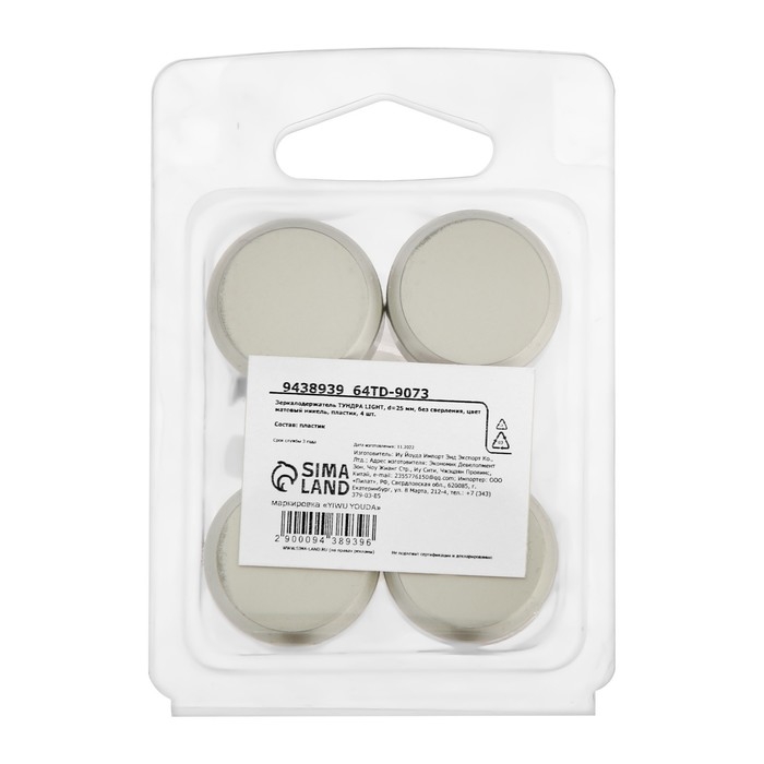 Зеркалодержатель ТУНДРА , d=25 мм, без сверления, цвет матовый никель, пластик, 4 шт.
