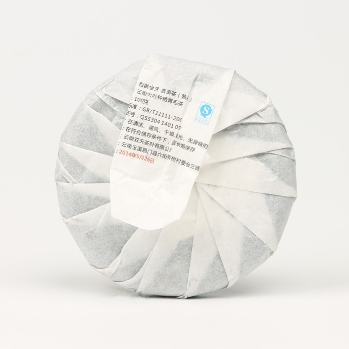 Китайский выдержанный черный чай "Шу Пуэр. Bailing jinya", 100 г, 2014 г, Юньнань, блин