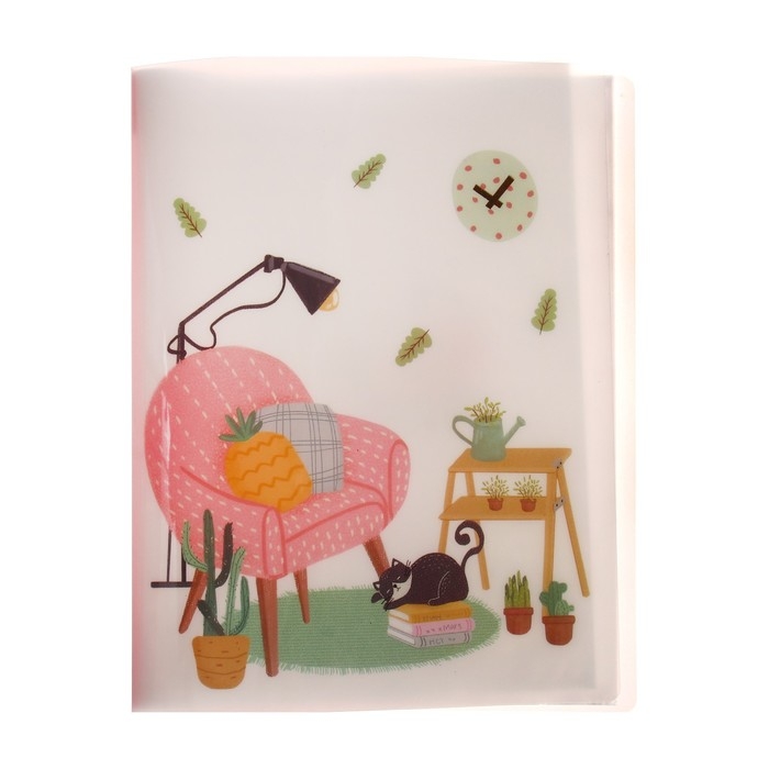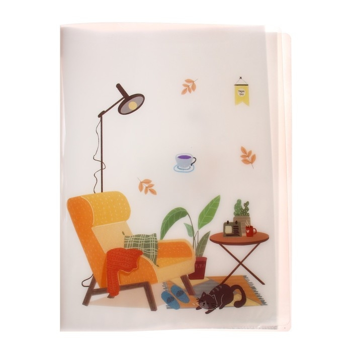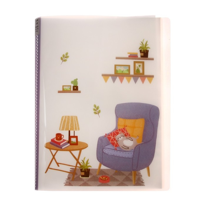 Папка формат А4 с 30 прозрачными файлами "Домашний уют" пластик, 400 мкм, МИКС