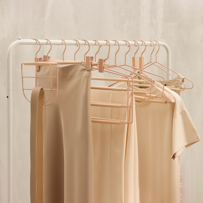 Вешалка – это компактное приспособление, которое позволит вам разместить в гардеробе классические штаны из лёгких или плотных материалов, блузки, рубашки, кофты и другие вещи. Изделие практичной формы занимает мало места, что позволяет экономить пространство в шкафу. Эргономичная форма поможет надёжно зафиксировать одежду и предотвратить её падение.