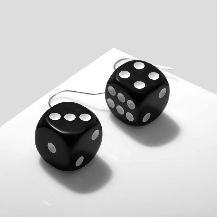 Серьги «Кости» игральные кубики, цвет чёрно-белый в серебре