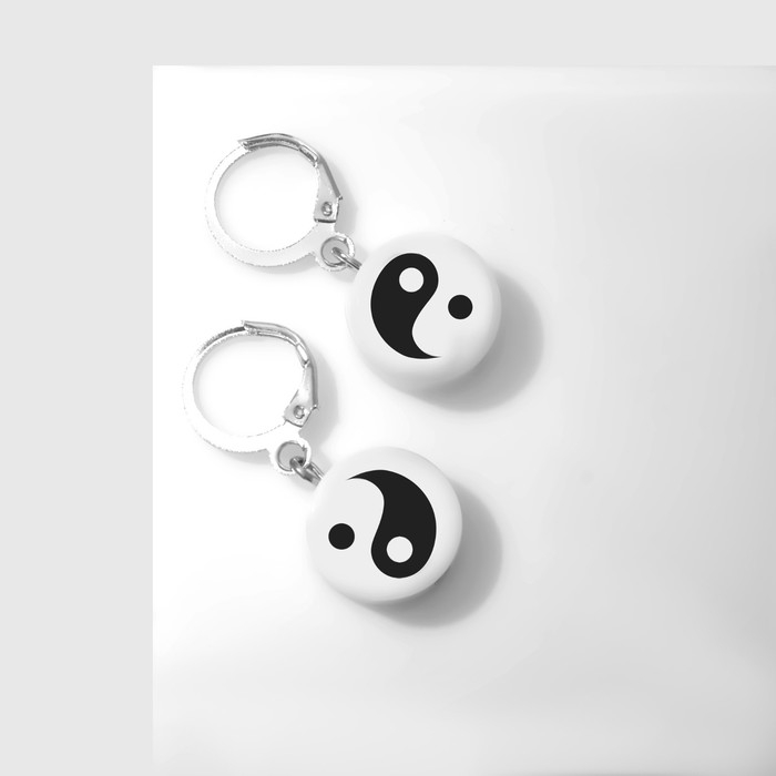 Серьги пластик «Инь-янь», цвет бело-чёрный в серебре