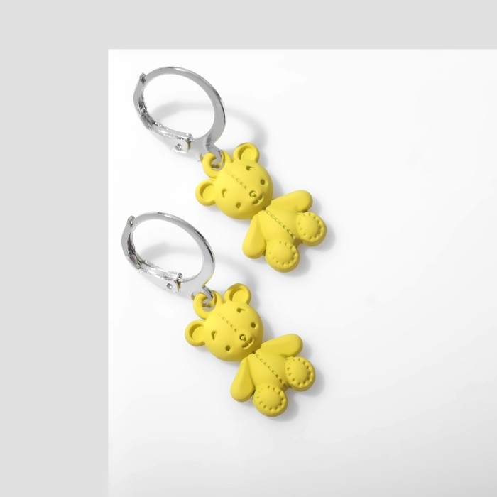 Серьги «Мишки» плюшевые, цвет жёлтый в серебре
