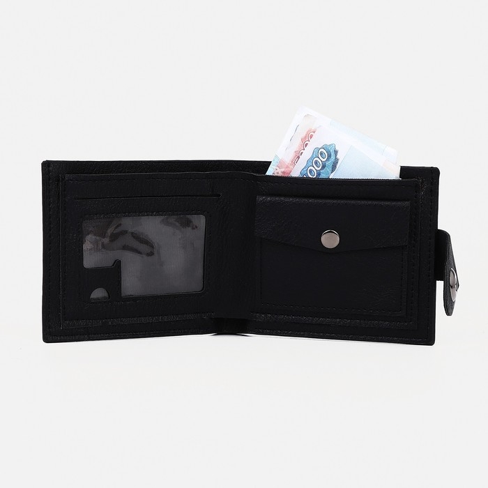 Портмоне мужское на магните, отдел для купюр, для карт, для монет, цвет чёрный
