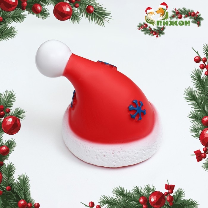 Игрушка пищащая для собак "Новогодняя шапка", 7,5 х 7 см