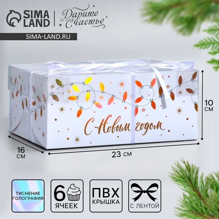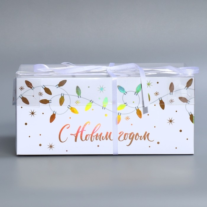 Коробка для капкейка «С Новым годом», голография, 23 х 16 х 10 см, Новый год