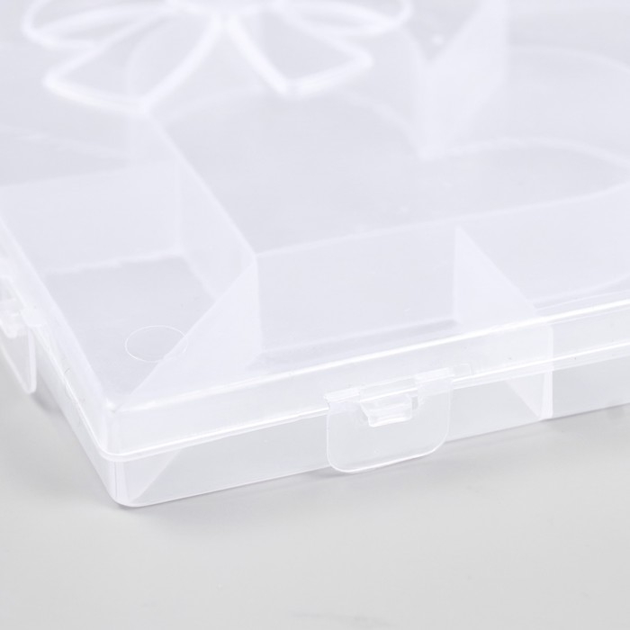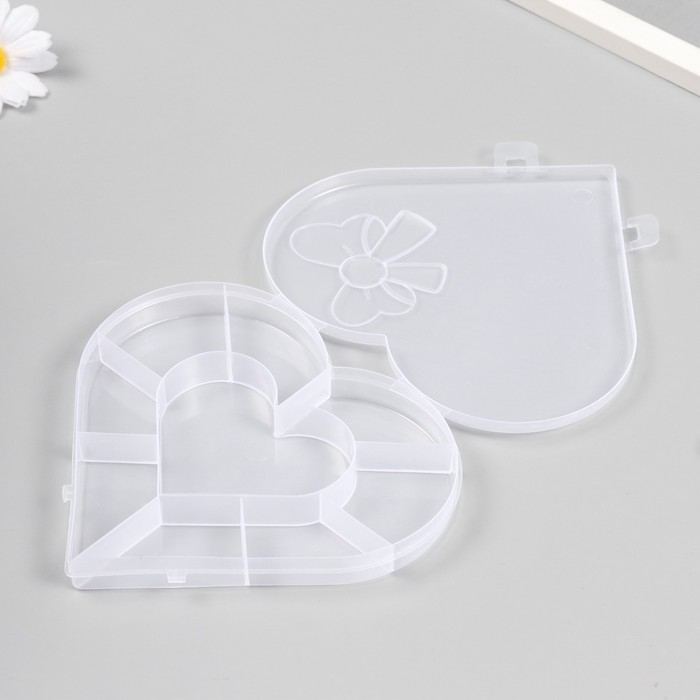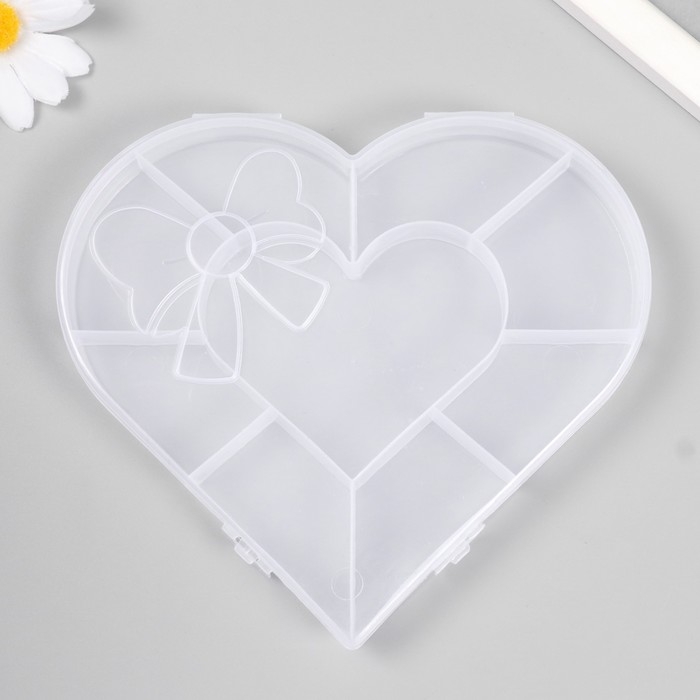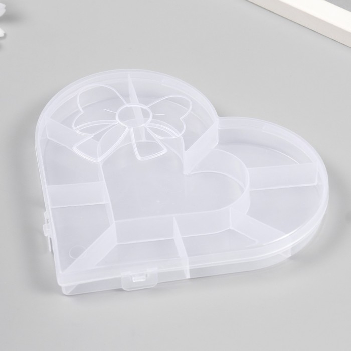 Шкатулка пластик для мелочей "Сердце с бантиком" прозрачная 9 отделений 15,5х14х1,8 см