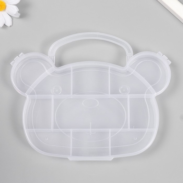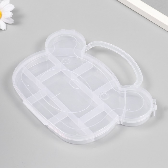 Шкатулка пластик для мелочей "Сумочка мишка" прозрачная 11 отделений 18,8х15х1,8 см