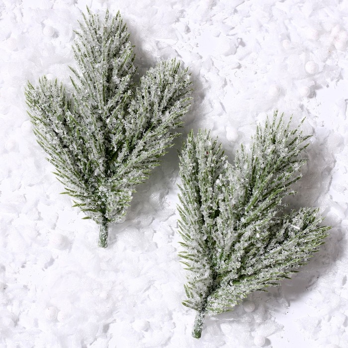 Декор «Веточка ели со снегом», набор 2 шт., размер 1 шт. — 12 см