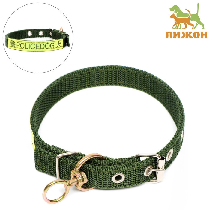 Ошейник брезентовый двухслойный, 72 х 3,5 см, ОШ 45-60 см, хаки