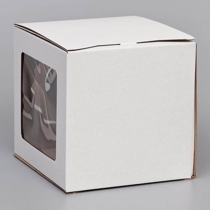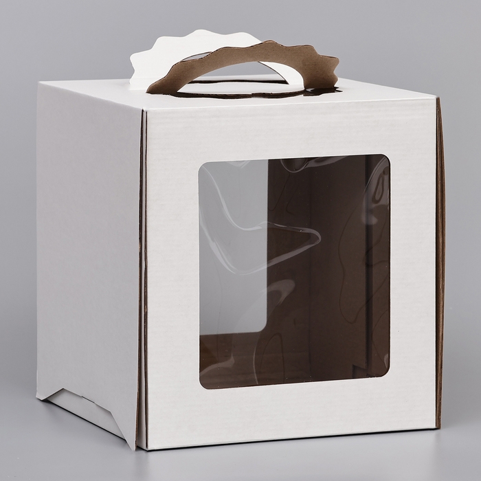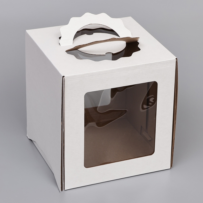 Коробка под торт, белая, с окном, 18 х 18 х 22 см