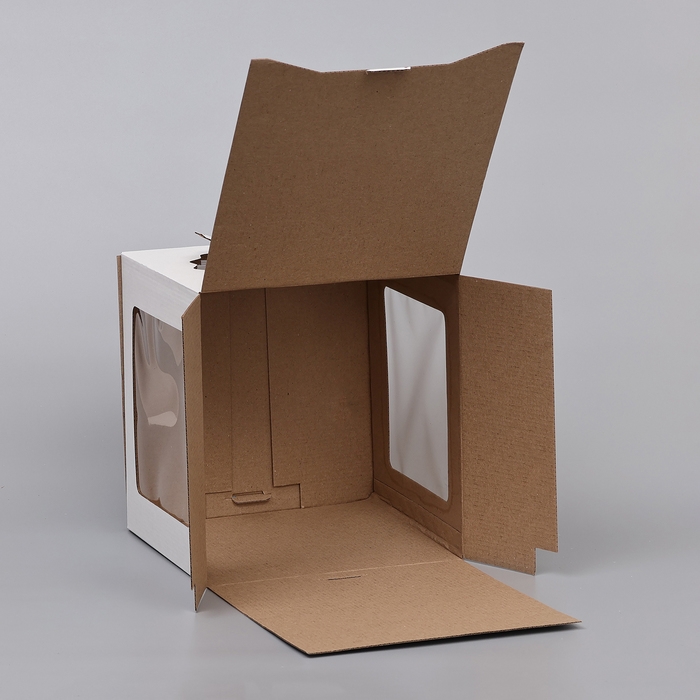Кондитерская упаковка "Квадрат", 2 окна, белая, 26 х 26 х 28 см