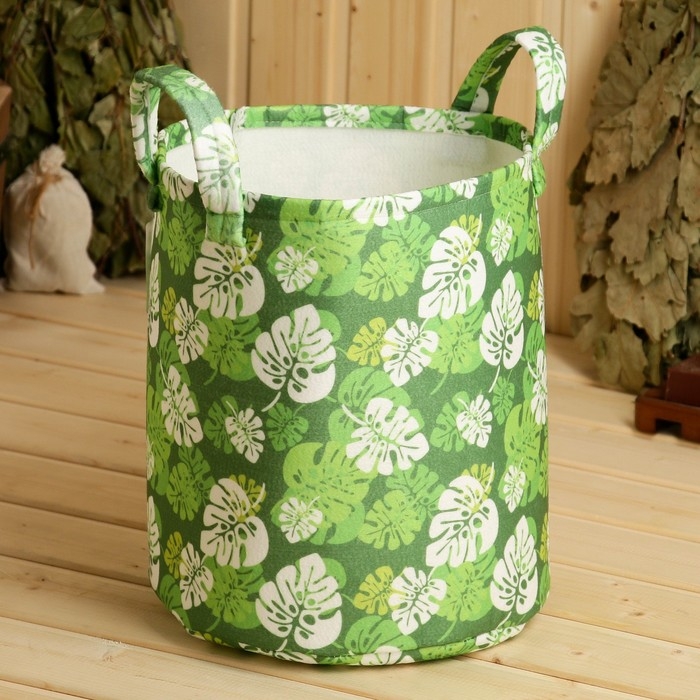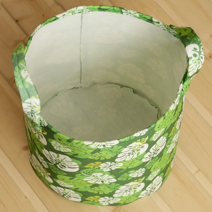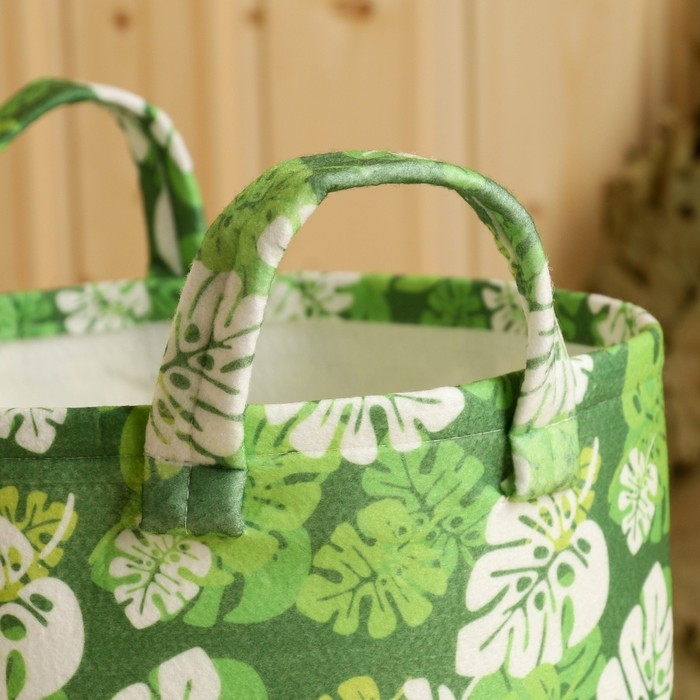 Органайзер для хранения с верхними ручками, принт зеленые листья, 28х28х25 см, войлок