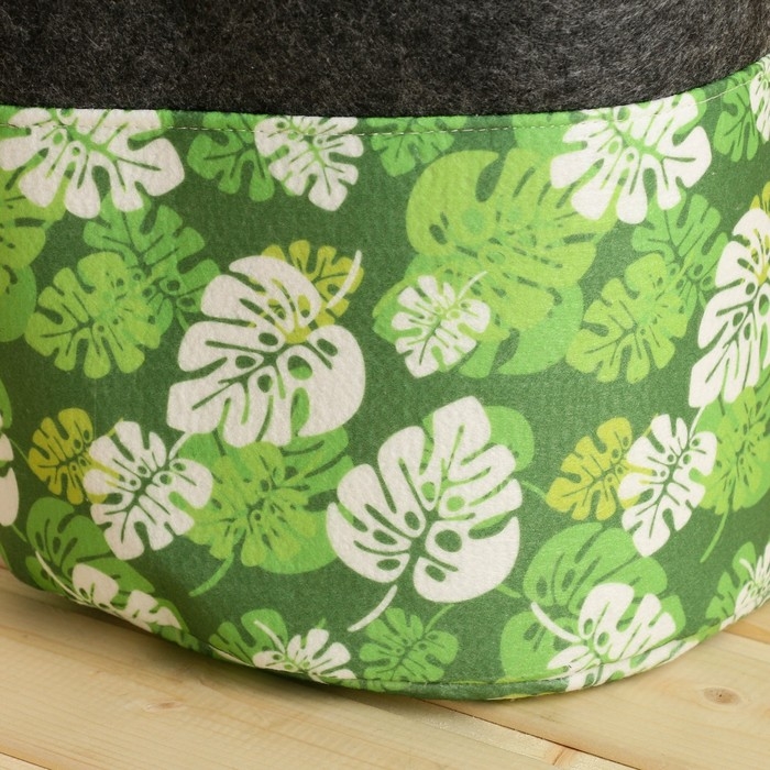 Органайзер для хранения с боковыми ручками, принт зеленые листья, серый, 28х28х26 см
