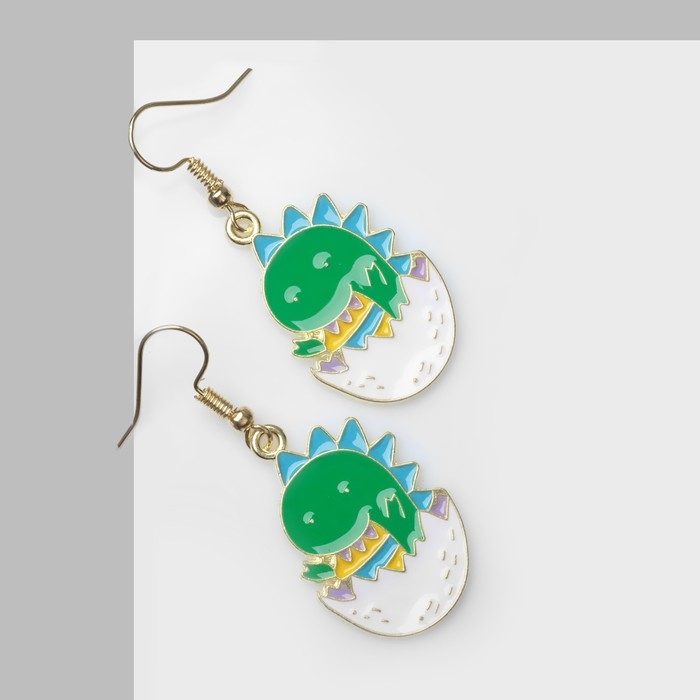 Серьги «Динозавр» в яйце, цветные в золоте
