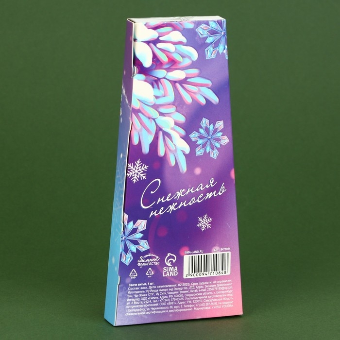 Новогодние восковые свечи «Новый год: Верь в чудеса», набор 4 шт., голубые, 15 х 1 х 1 см.