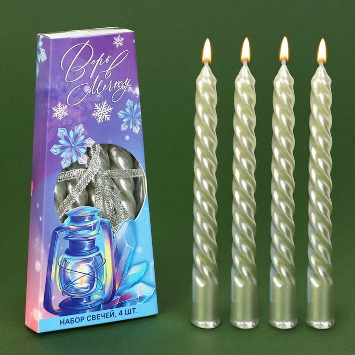 Новогодние восковые свечи «Новый год: Верь в чудеса», набор 4 шт., зеленые, 15 х 1 х 1 см.