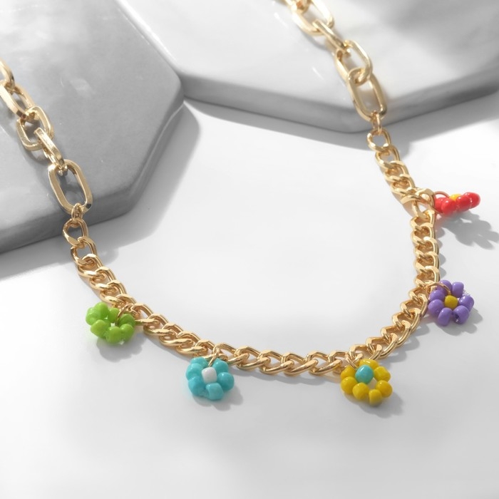 Цепь «Лето» цветы, цветная в золоте, L= 40 см