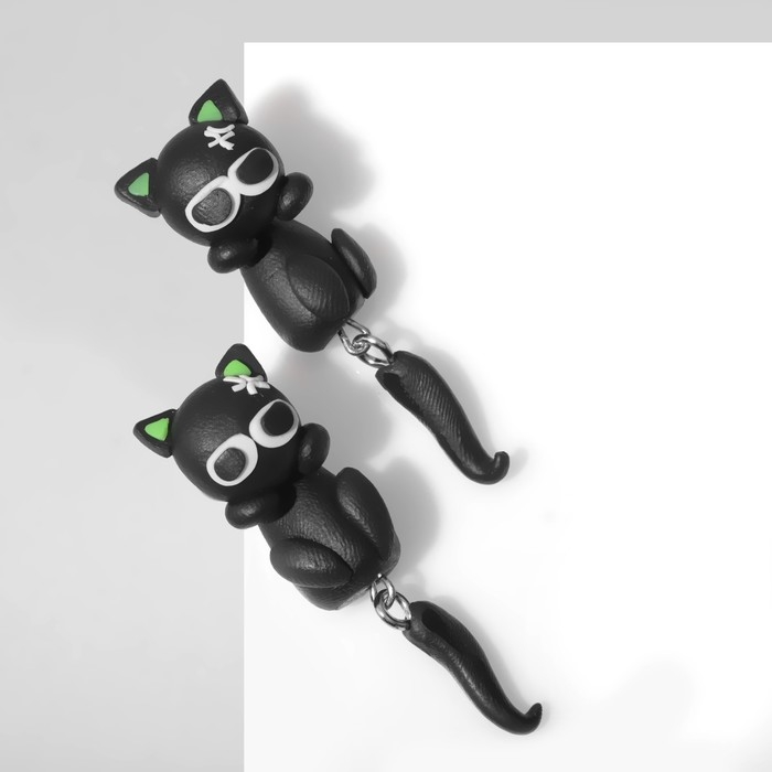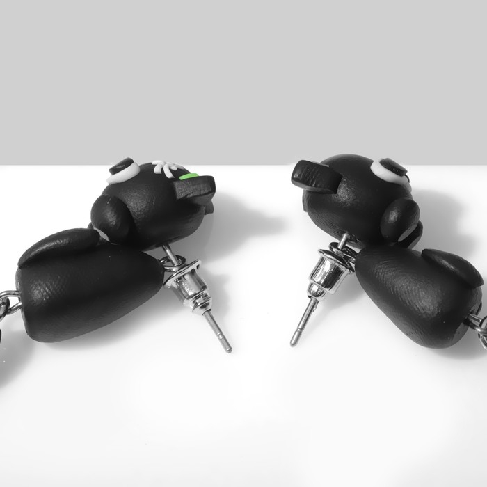 Серьги пластик «Мишка» хвост-сердечко, цветные в серебре