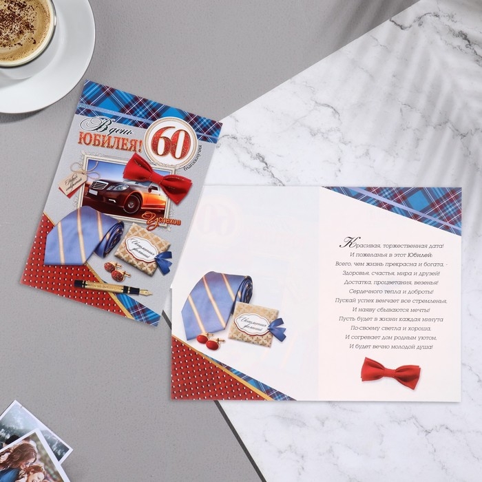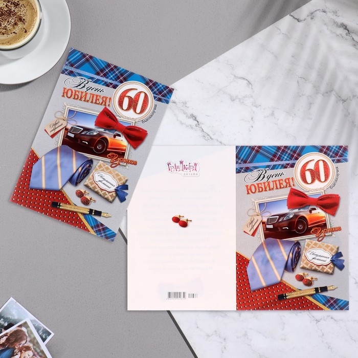 Открытка "В День Юбилея! 60" глиттер, тиснение, автомобиль, А4