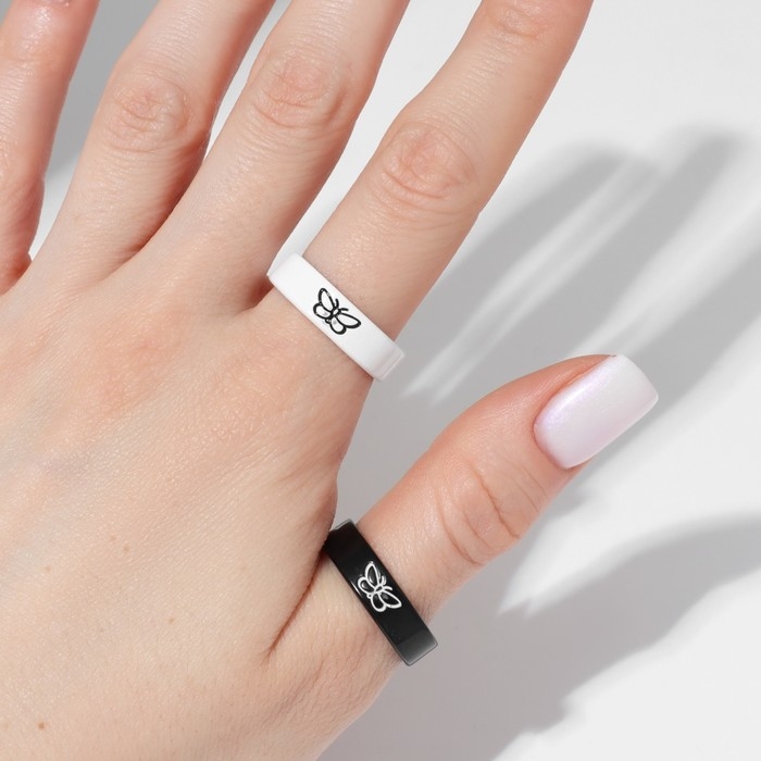 Набор колец 2 штуки «Неразлучники» бабочки, цвет чёрно-белый