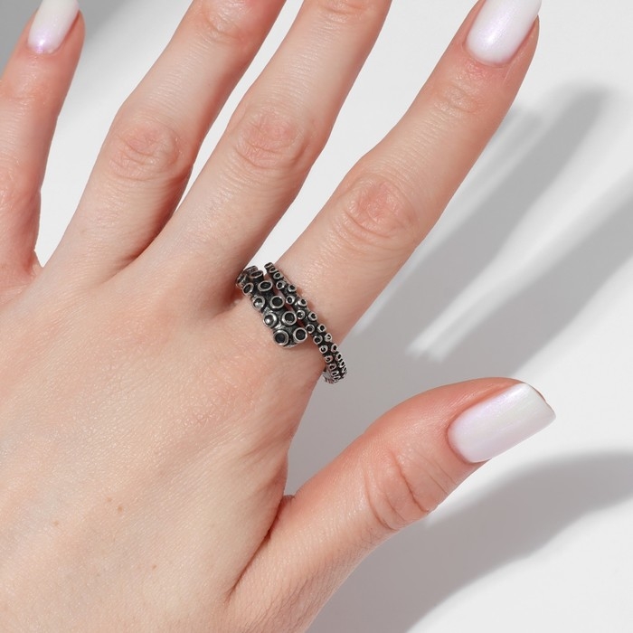 Кольцо «Щупальца», цвет чернёное серебро, безразмерное