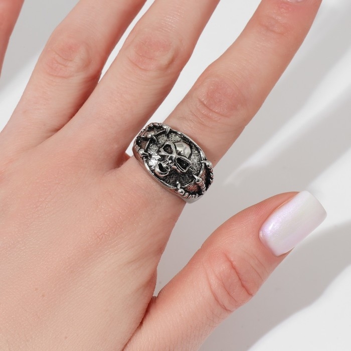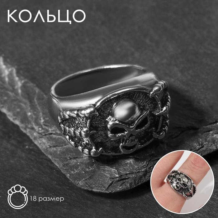 Кольцо «Перстень» череп и когти, цвет чернёное серебро, 18 размер
