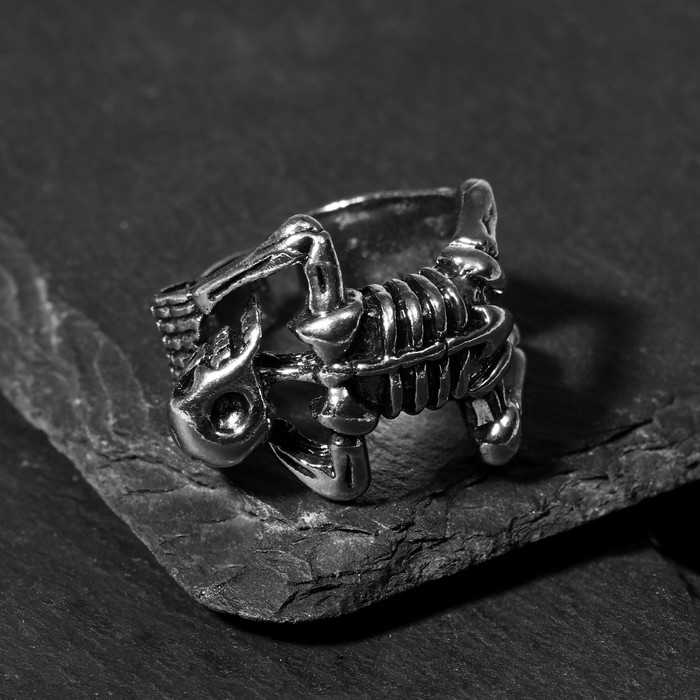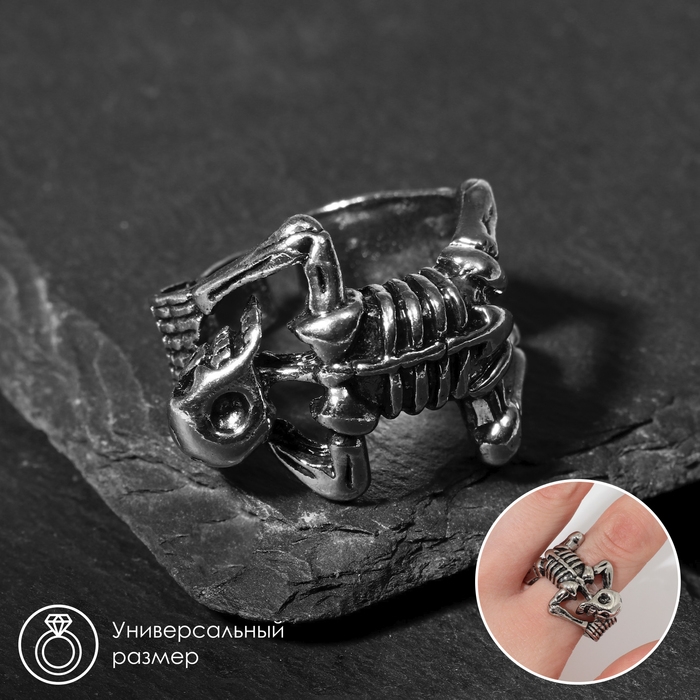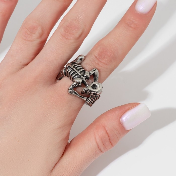 Кольцо «Перстень» скелет, цвет чернёное серебро, безразмерное