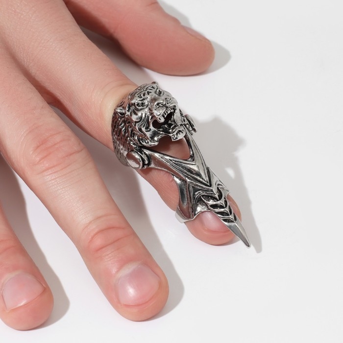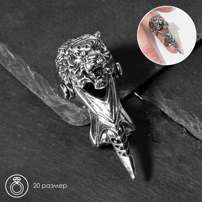 Кольцо «Коготь» тигр, цвет чернёное серебро, 20 размер