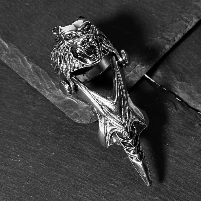 Кольцо «Коготь» волк, цвет чернёное серебро, 20 размер