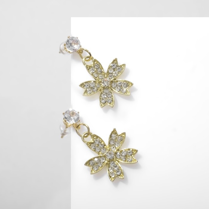 Серьги со стразами «Цветы» литл, цвет белый в золоте