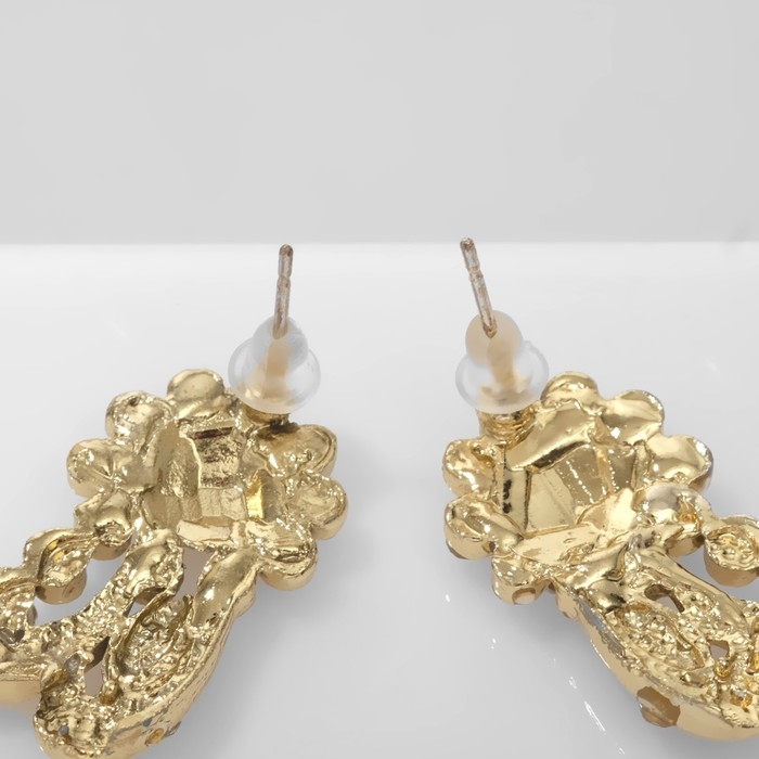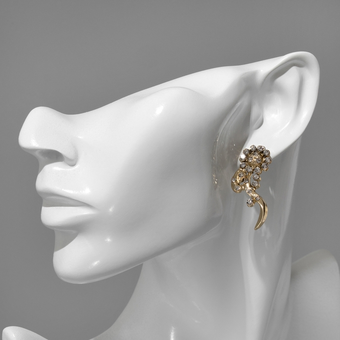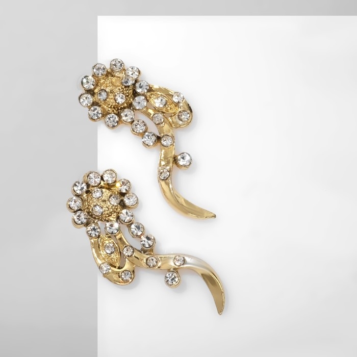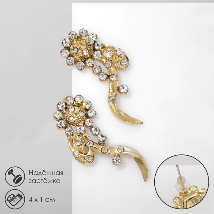 Серьги со стразами «Цветы» изгибы, цвет белый в золоте