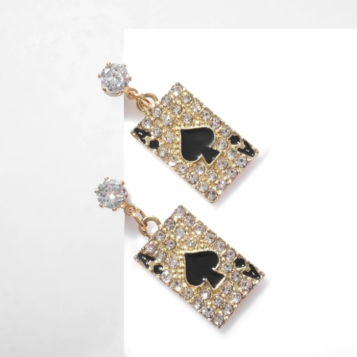 Серьги эмаль «Карты» пики, цвет чёрно-белый в золоте