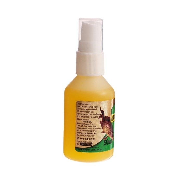 Стойкий, душистый, устойчивый запах придает неотразимый аромат прикормочным смесям и насадочным компонентам. Ароматизаторы бывают как на водной, спиртовой и на масляной основе. Используем натуральные масла (конопляное, анисовое, подсолнечное и т.д.)