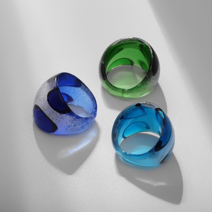 Кольцо набор 3 штуки «Формы», цвет белый, синий, зелёный, безразмерные