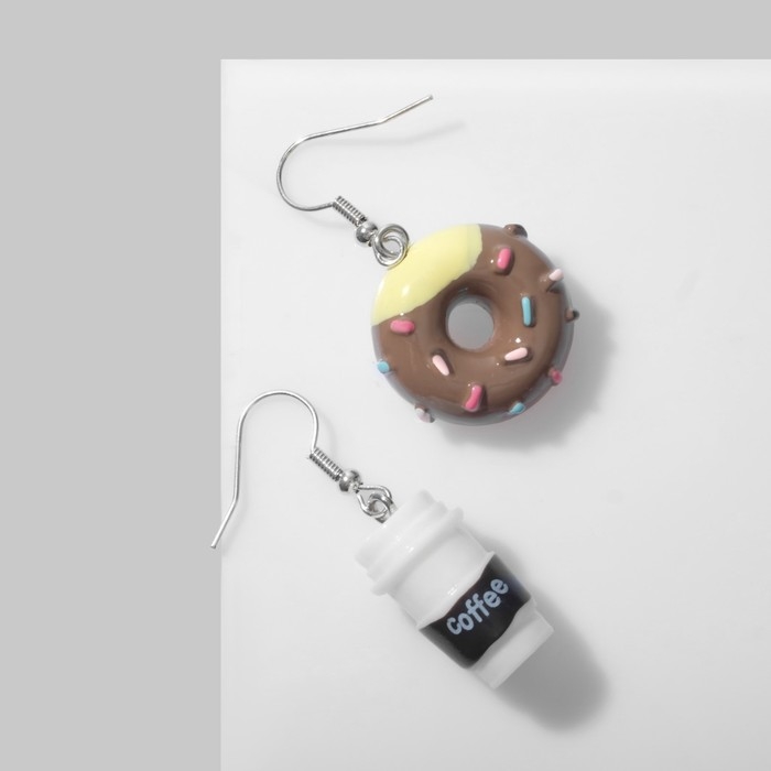 Серьги пластик «Кофе с пончиком», цветные в серебре