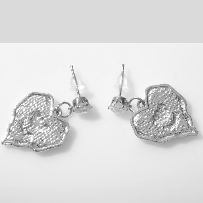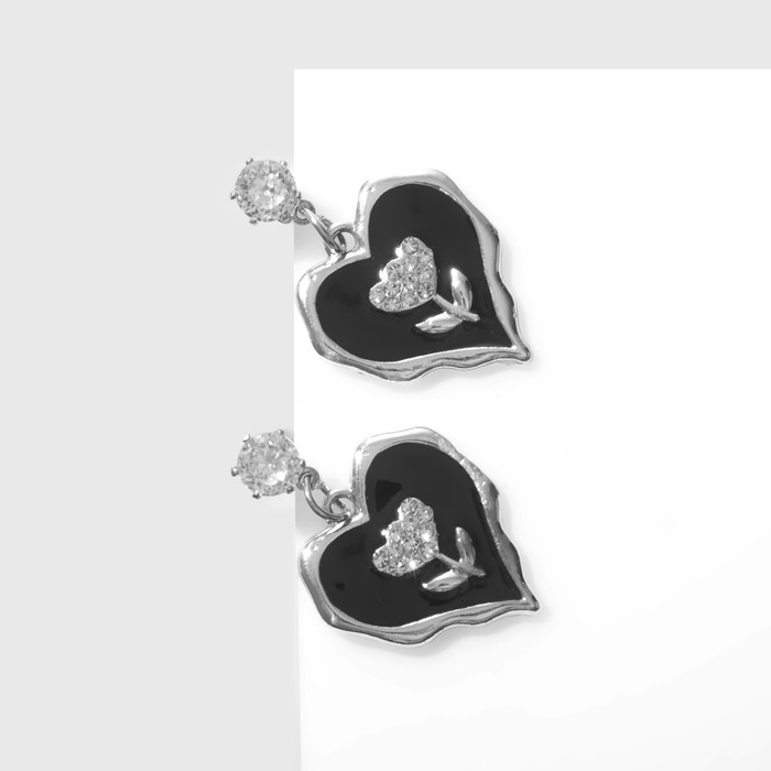 Серьги эмаль «Сердца» с тюльпанами, цвет бело-чёрный в серебре