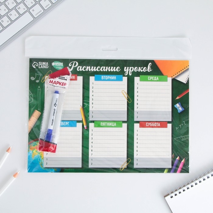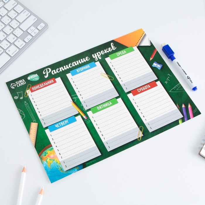 Расписание уроков «Школьная пора» А4, многоразовое магнитное с маркером