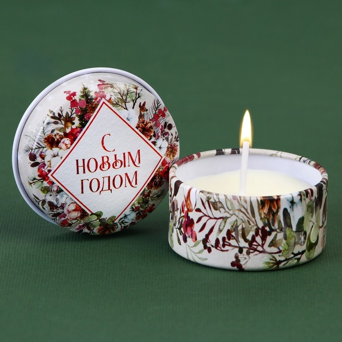 Свеча новогодняя в железной банке «Новый год: Тепла и уюта«Новый год: аромат мята, 4.8 см