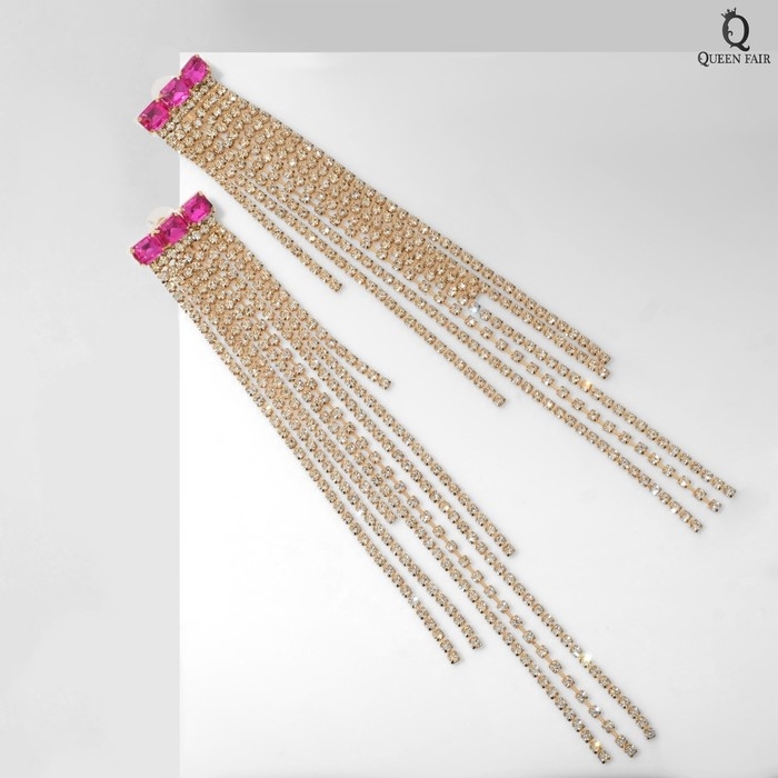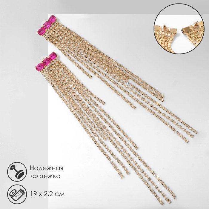 Серьги висячие со стразами «Мулен Руж» водопад, цвет розово-белый в золоте, 19 см