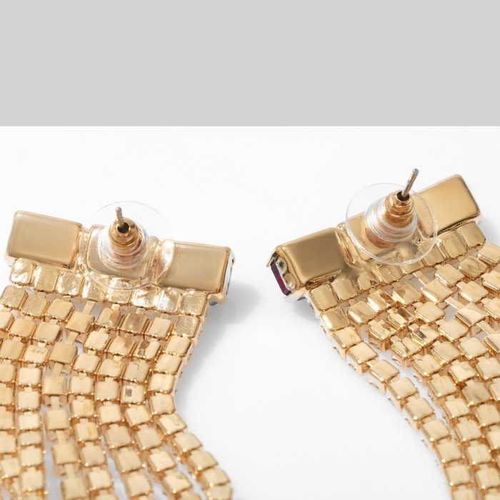 Серьги висячие со стразами «Голливуд» полукруг, 6 рядов, цвет белый в золоте, 19,5 см