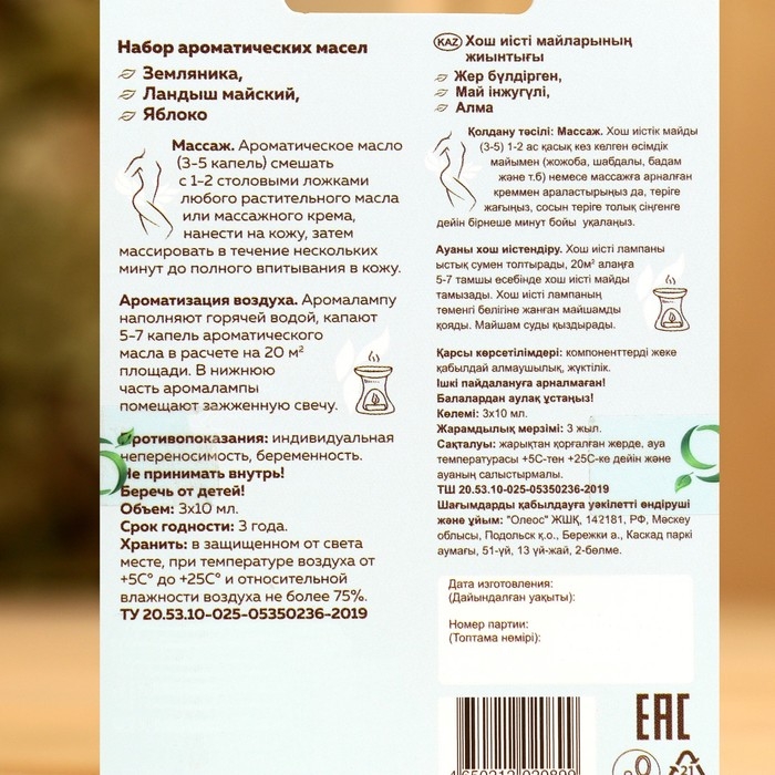 Набор ароматических масел "Земляника, ландыш майский, яблоко"