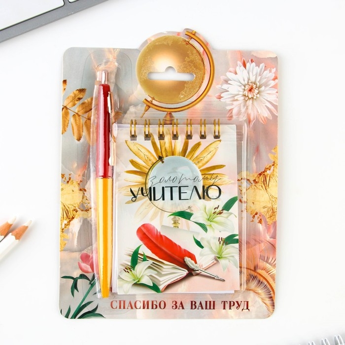 Подарочный набор блокнот «Золотому учителю», формат А7, 32 листа, ручка пластик,синяя паста