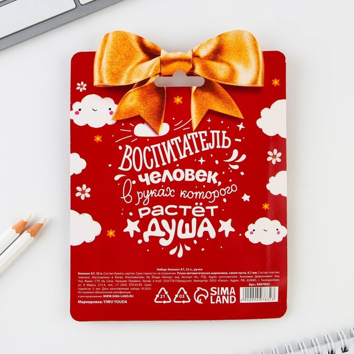 Подарочный набор блокнот «Лучшему воспитателю» формат А7, 32 листа, ручка пластик,синяя паста