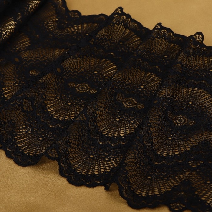 Кружевная эластичная ткань, 240 мм × 2,7 ± 0,5 м, цвет чёрный