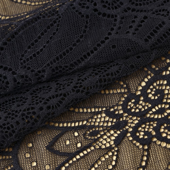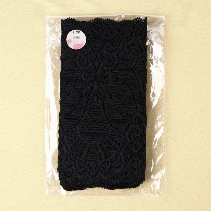 Кружевная эластичная ткань, 185 мм × 2,7 ± 0,5 м, цвет чёрный